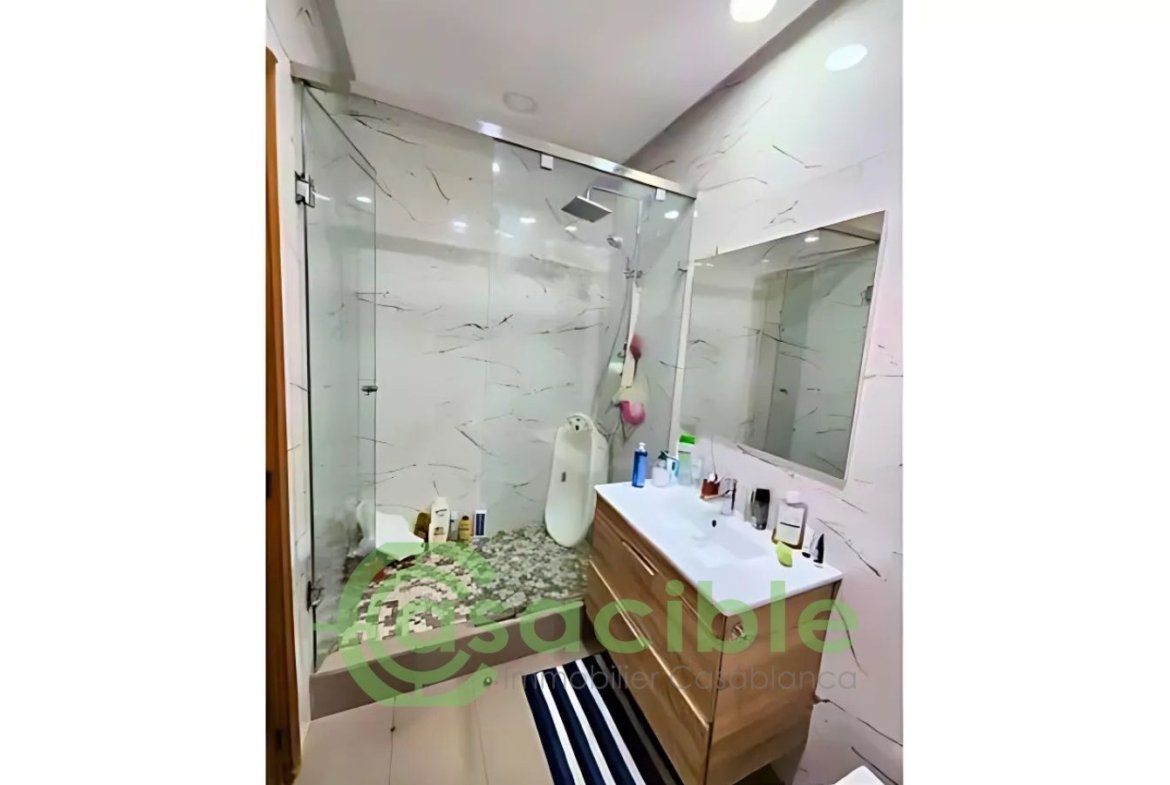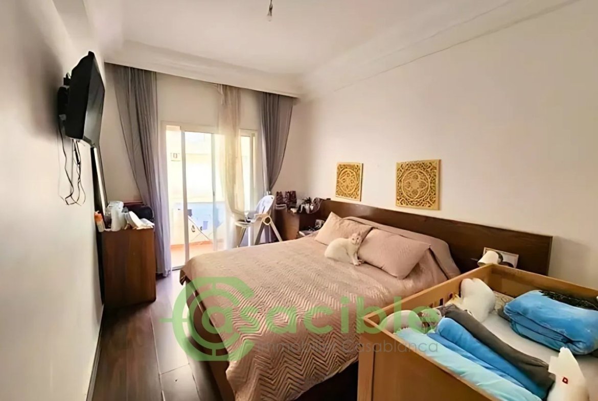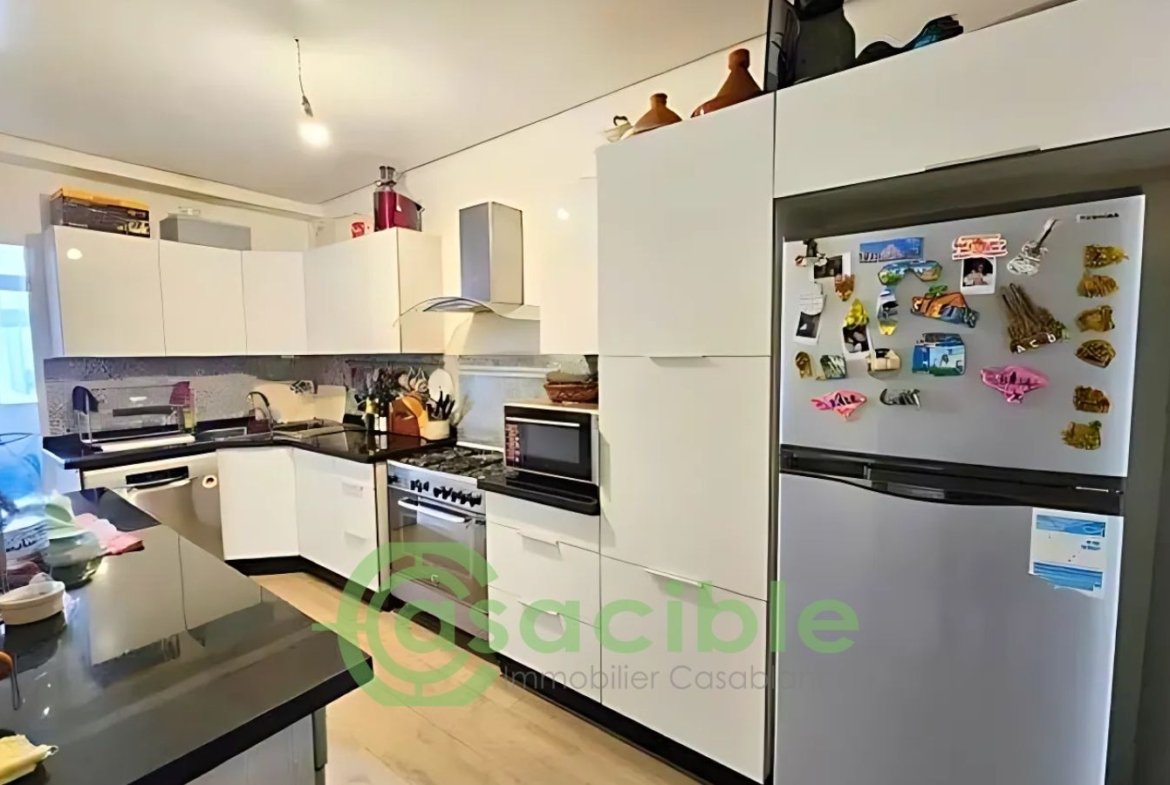 À louer, appartement vide haut standing de 150 m² situé dans le quartier Les Princesses à Casablanca, au sein d’une résidence sécurisée avec ascenseur, gardien et place au garage.